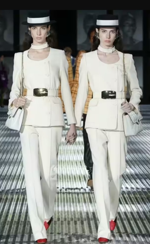 Also surprising was the Gucci show, whose creative director Alessandro Michele explored the theme of identical twins. The designer imagined and realised a show marked by a very theatrical taste, staging 68 pairs of identical twins. The show featured amazing styles for the next Spring Summer season, mostly centered on a reinterpretation of the late ’70s and ’80s.