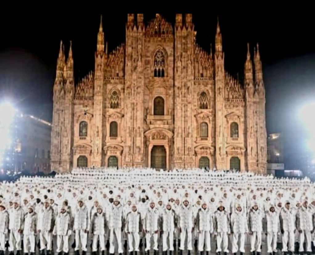 One of the most memorable events in this edition of the Milan Fashion Week was undoubtedly the Moncler’s show. The brand celebrated its 70th anniversary in the spectacular Piazza del Duomo, kicking off a 70-day program of international events. In honour of the brand’s foundation date, the show involved a total of 1952 people. Musicians, models, and dancers, all identically and choreographically dressed in white with the iconic Maya down jacket.